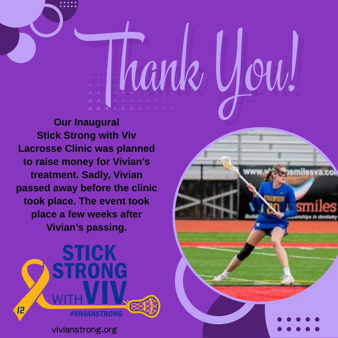 In January 2024, during a particularly long hospital stay, a close family friend visited Vivian and shared a brilliant idea. To honor Vivian’s love of both playing and coaching lacrosse, she was planning a girls youth lacrosse clinic to raise money for Vivian’s treatment.